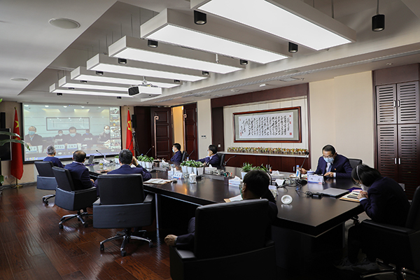 2月13日下午,省政府國資委通過隴政釘平臺召開視頻會議,集團返崗班子成員在集團分會場參會。視頻會議結束后,立即召開會議,研究集團貫徹落實工作。