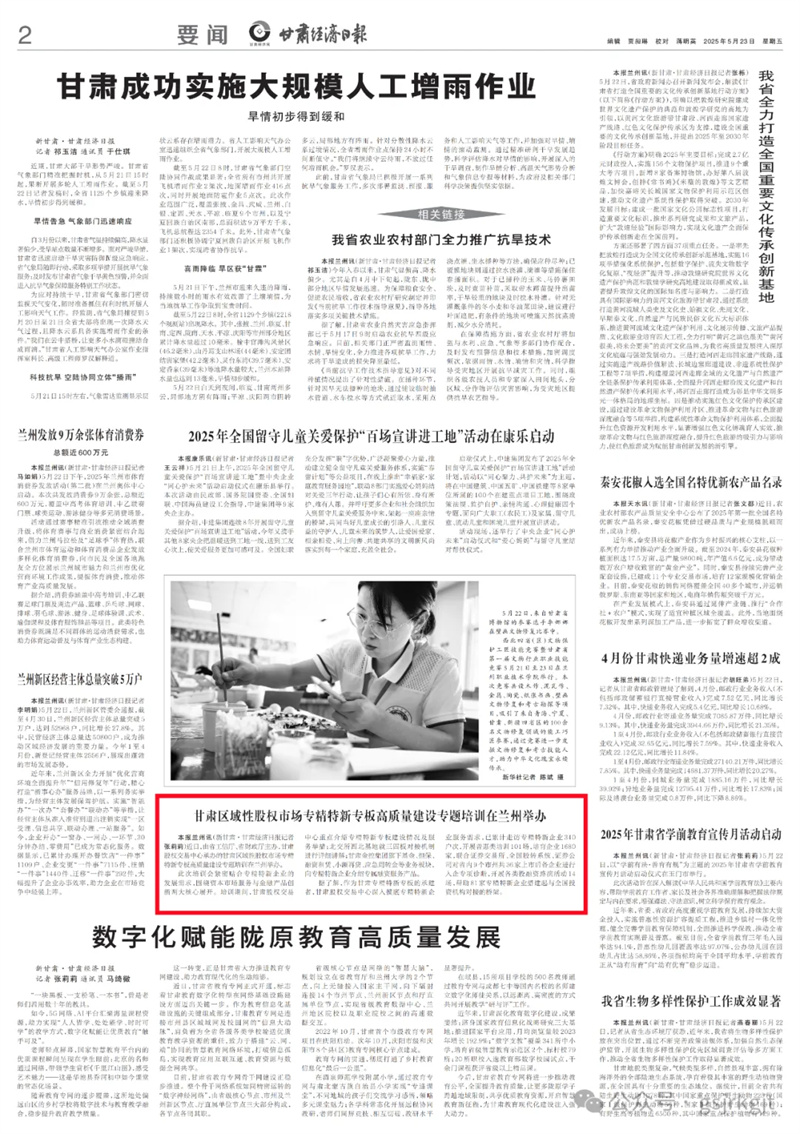 甘肅區域性股權市場專精特新專板高質量建設專題培訓在蘭州舉辦