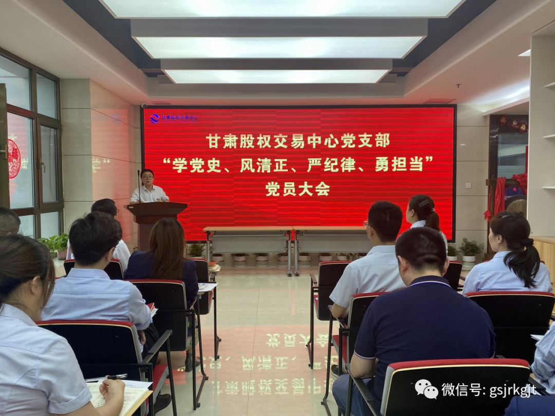 近日,甘肅股權(quán)交易中心召開“學(xué)黨史、風(fēng)清正、嚴(yán)紀(jì)律、勇?lián)?dāng)”黨員大會(huì),黨支部書記樊亞娟主持會(huì)議,全體員工參加會(huì)議。會(huì)后,公司班子成員與每位員工分別進(jìn)行了談心談話,員工圍繞“學(xué)黨史、風(fēng)清正、嚴(yán)紀(jì)律、勇?lián)?dāng)”主題,結(jié)合個(gè)人工作實(shí)際和思想動(dòng)態(tài),深挖癥結(jié)根源查找自身不足,班子成員耐心細(xì)致聽取了員工內(nèi)心訴求和意見建議。此次黨員大會(huì),通過聽真話、解難題、納良策一系列動(dòng)作,營造出熱心對(duì)待、真誠相見、坦誠交流的良好氛圍,激發(fā)了公司上下團(tuán)結(jié)協(xié)作、攻堅(jiān)克難、共謀發(fā)展的干事熱情,為進(jìn)一步開展好各項(xiàng)工作筑牢了堅(jiān)實(shí)的思想基礎(chǔ)。