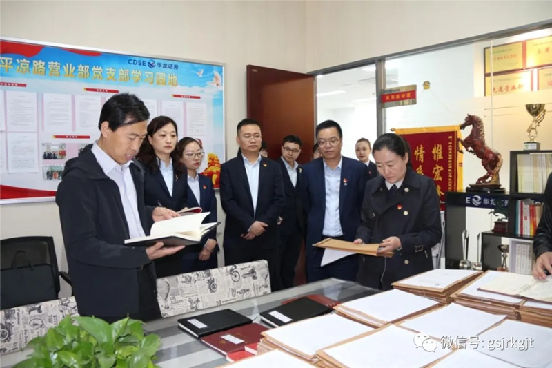 考核組還對金控集團華龍證券2020年度黨建工作責任制落實情況進行了民主測評、個別談話,查閱了黨建基礎資料,并對金控集團辦公室、金控擔保集團、華龍證券蘭州平涼路營業部等基層黨組織黨建工作情況進行了現場檢查。